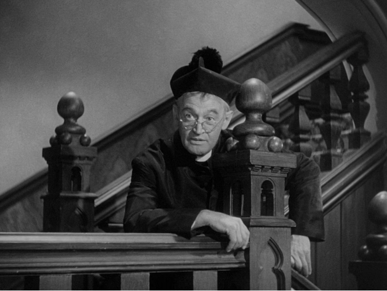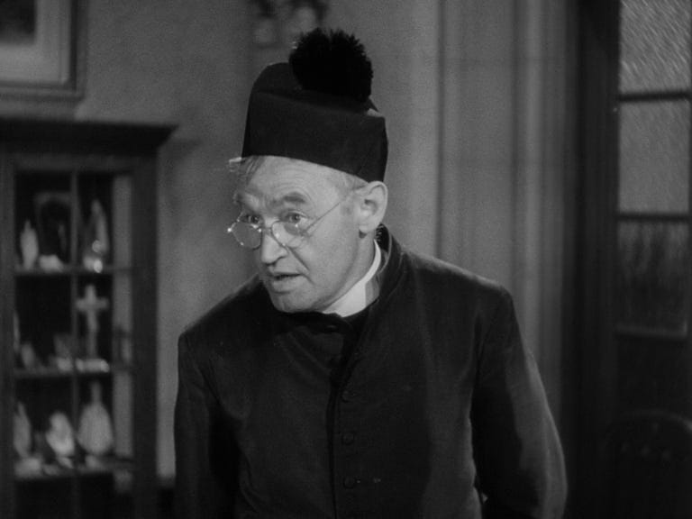 —But then the less progressive Father Fitzgibbon (Barry Fitzgerald) comes downstairs and catches them in the act: